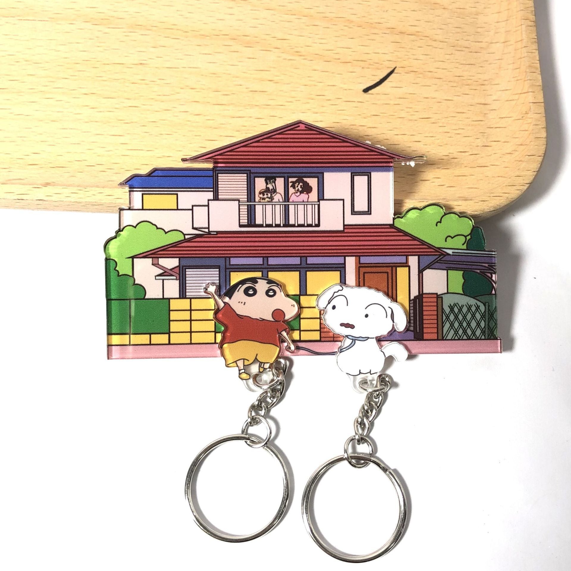 Xiaohongshu same style Crayon Shin-chan keychain new style white wall sticker refrigerator sticker creative cartoon key pendant